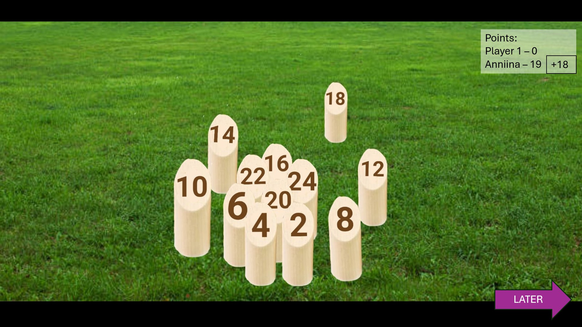 variant of the popular Finnish outdoor game Mölkky.